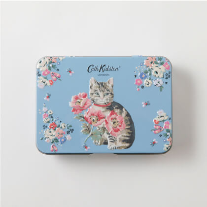 ブリキ缶は小物入れとしてお楽しみいただけます。見た目も華やかで、贈り物に人気です。