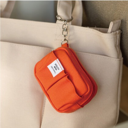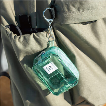クリアタイプと布生地タイプの2種類のキーホルダーポーチ。用途や雰囲気に合わせて選べる小物入れです♪クリアタイプは中身が見えるので、リップやアクセサリーの整理に便利。布生地タイプはやわらかな素材感で、普段使いにもぴったり。コンパクトでバッグに付けて持ち歩きやすいのが◎