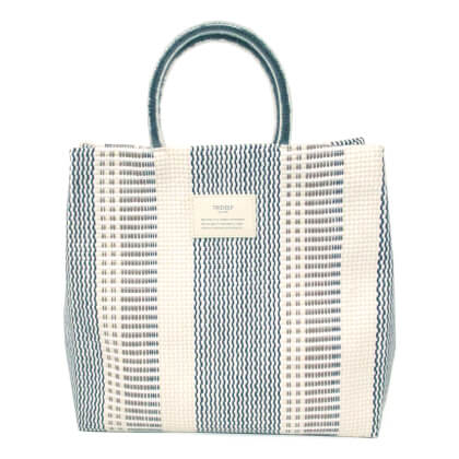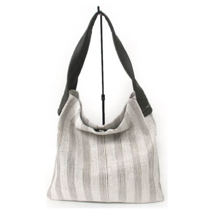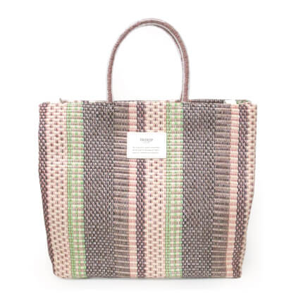ストライプ状に編み込まれた生地がほんのりとした光沢をまとい、カジュアルさと上品さを兼ね備えたバッグ。軽やかな使い心地で、シンプルな装いにも映えるカラフルなデザインが魅力です♪