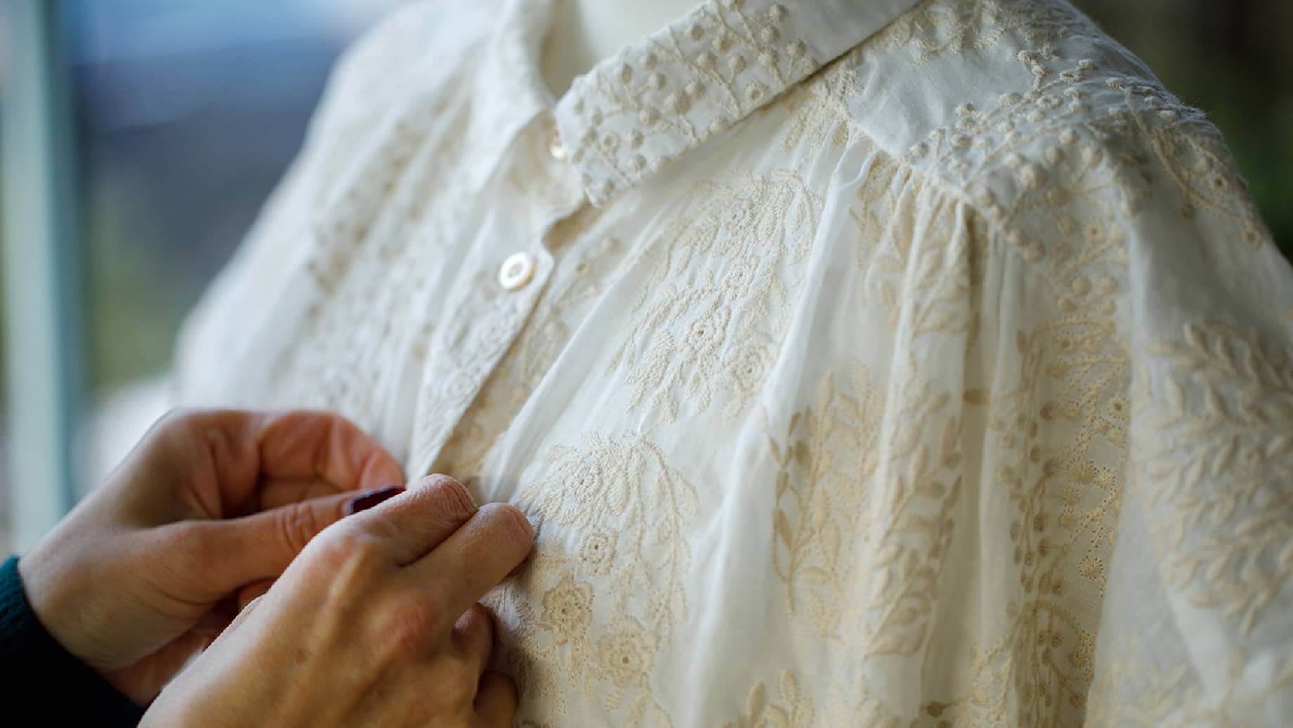 石川のレース工場、京都の染色加工工場、岡山のデニム工場など。日本各地で培われてきた高品質な技術が、ヨーロッパの古くて美しいものから生まれたデザインを形にします。