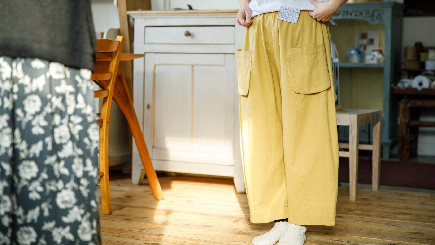 レースや刺繍生地のイメージが強いコットンハウス・アヤですが、シンプルなボトムスも、色違いや素材違いでリピート購入する方が多い、隠れた人気商品。