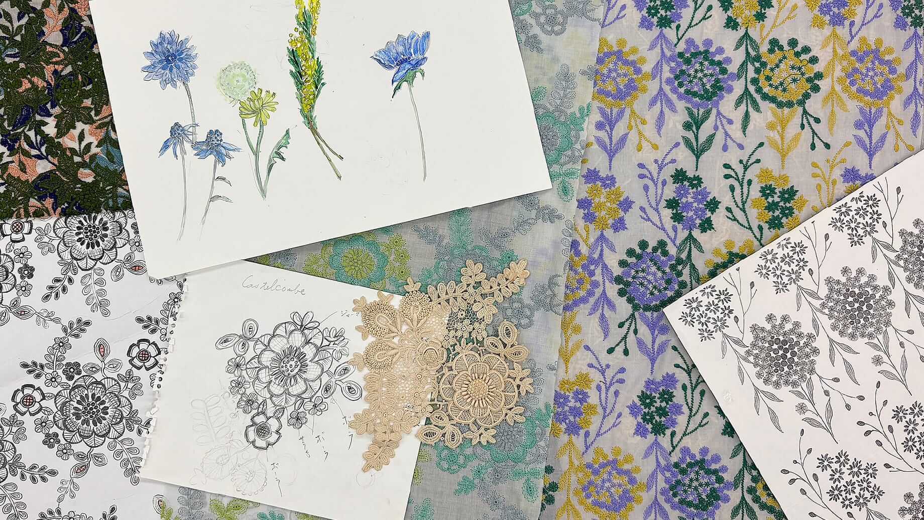 コットンハウス・アヤを象徴するレース生地や刺繍生地は、ヨーロッパのアンティークをモチーフにデザインされています。現在の会長であり創業者である小原洋子さんが、ヨーロッパ各地を旅しながらスケッチを描き、それをもとに新しい生地の図案が作られます。