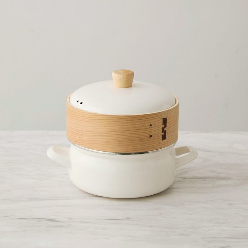 鍋・天然竹のせいろ・シリコンメッシュシートがセットになっていて、買ったその日からすぐに使える便利な鍋セット。ホーローは鉄素材のため熱伝導と保温性に優れており、表面ガラス質なので汚れにくくお手入簡単!蒸籠にはシリコンマット付きです。本体はオーブン調理OK。200ボルトIH対応。