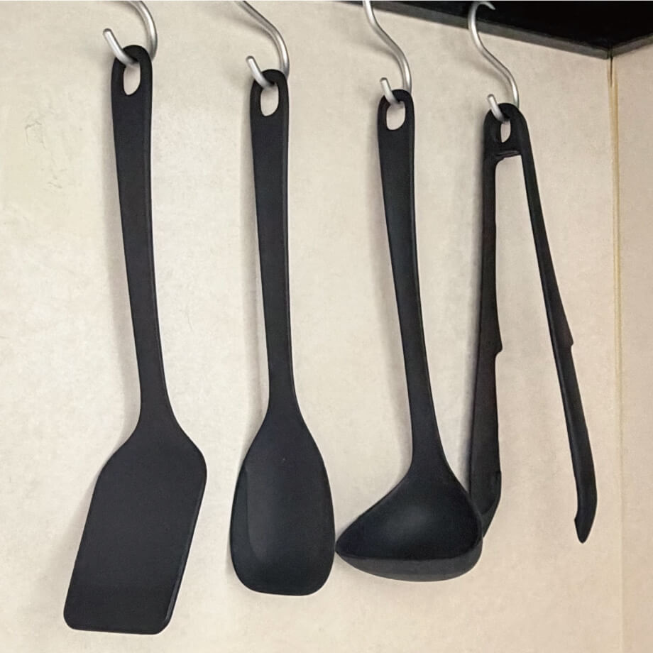 特におすすめなのが「トング」です。以前は100円ショップで買ったシルバーのギザギザしたトングを使っていましたが、折れる部分が洗いにくかったり、食材が崩れてしまったりと少し使いづらさを感じていました。